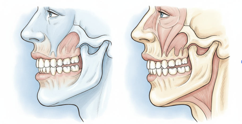 一方で、顎の骨格自体が大きく前方に突出している場合は、インビザライン単独での治療が難しくなります。上顎骨・下顎骨両方が前に突き出している重度の上下顎前突などが代表例です。このようなケースでは、いくら歯を後方へ引っ込めても、見た目の改善は限定的なものになってしまいます。