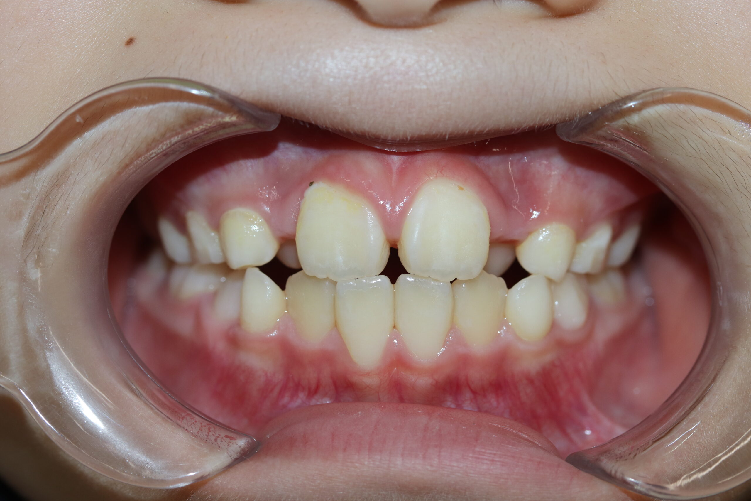 噛み合わせが深すぎて、上の前歯が下の歯のほとんどを覆い隠す状態です。