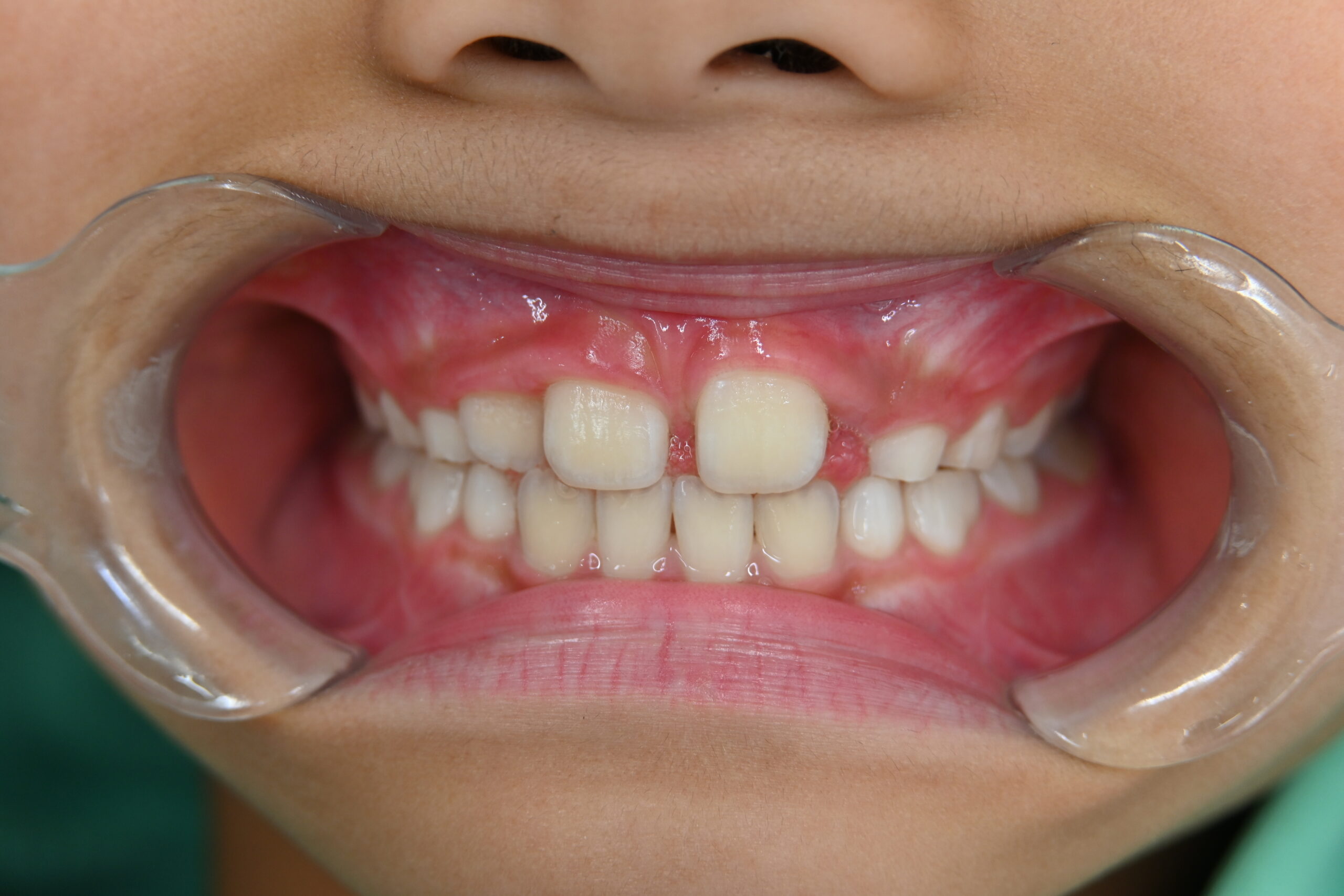 指しゃぶりや舌で前歯を押す癖は、前歯に持続的な力がかかるため、出っ歯や開咬の原因となります。